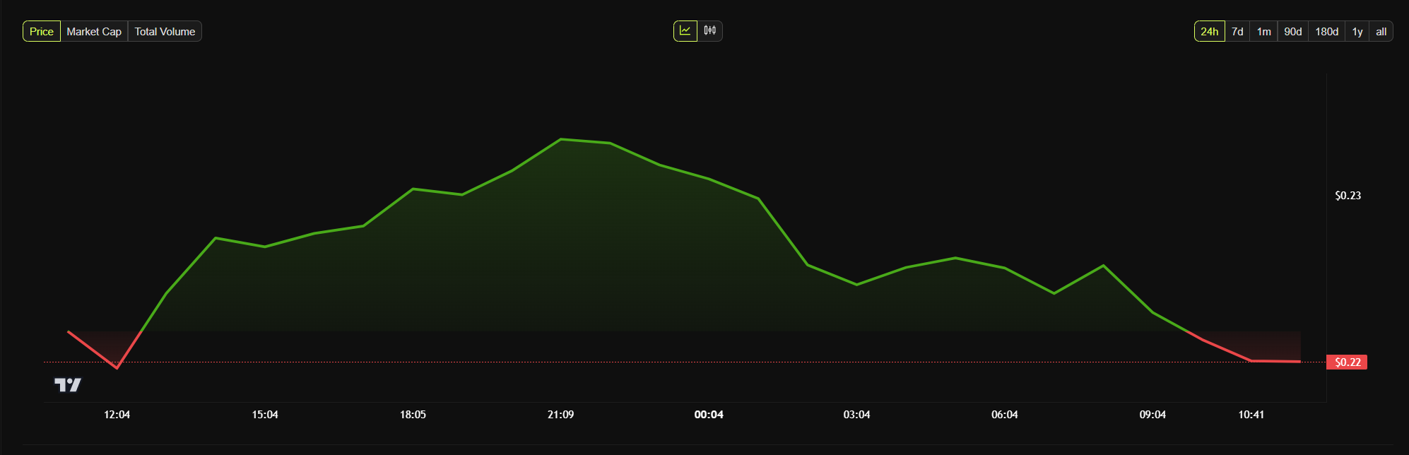 Незважаючи на відновлення, ціна 1INCH зросла лише на скромні 1,12% з моменту відкриття сесії в неділю і торгувалася за 0,23 доларів на момент написання.