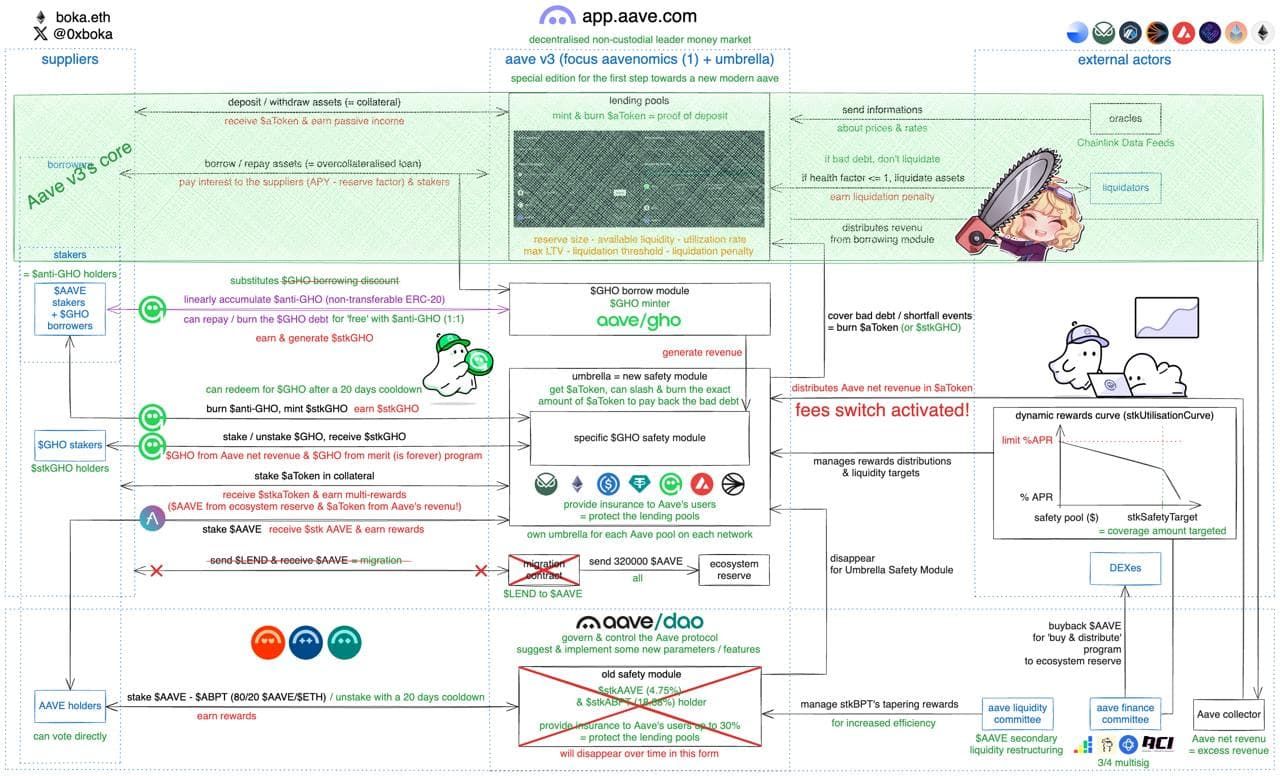 Пропозиція на цьому не зупиняється. Новий механізм Aave Umbrella має на меті захистити користувачів від поганих боргів, зміцнюючи ліквідність у різних ланцюгах. Виділяючи надлишковий дохід DAO для стимулювання стейкерів Umbrella aToken, система спочатку захищатиме wETH, USDC, USDT та GHO, з планами на ширше покриття.