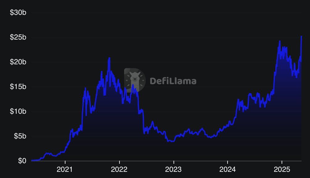 Сплеск активності китів на Aave збігається з видатними досягненнями DeFi. Засновник Aave, Стані Кулечов, оголосив 11 травня 2025 року, що Aave досяг рекордного загального обсягу заблокованих коштів (TVL) у 25 мільярдів доларів, що робить його одним з найбільших протоколів DeFi.