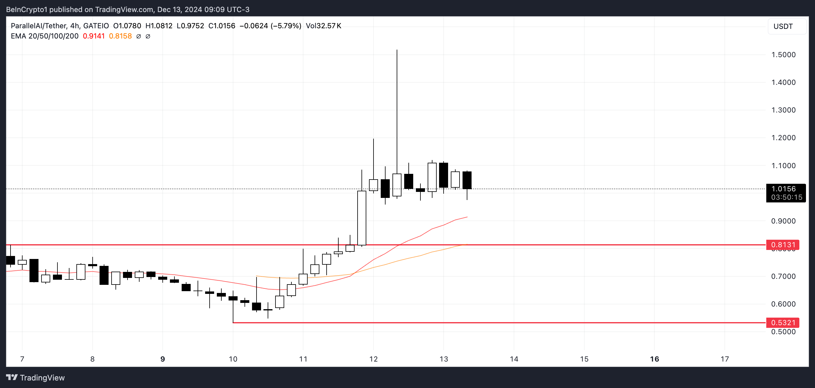 З іншого боку, сильна підтримка знаходиться на рівні $0,81, але якщо вона буде пробита, ціна може впасти до $0,53. Це означатиме потенційне зниження на 47% для AI монети.