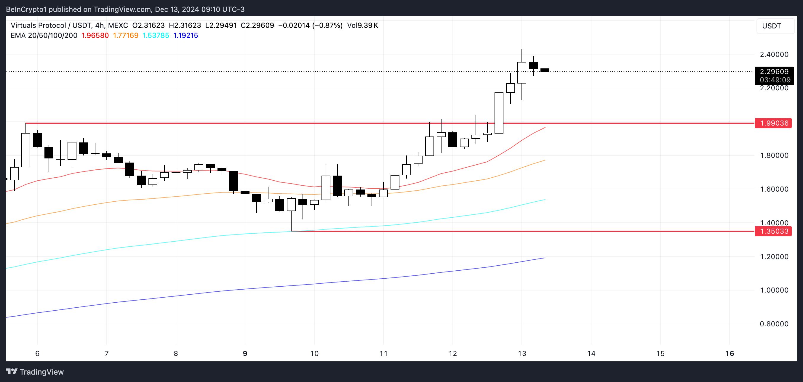 Якщо поточний імпульс збережеться, вона може піднятися до $3 до кінця грудня, пропонуючи 30% зростання. З іншого боку, якщо інтерес до крипто AI агентів зменшиться, VIRTUAL може перевірити сильну підтримку на рівні $1,99, з потенційним падінням до $1,35, якщо цей рівень буде пробито.