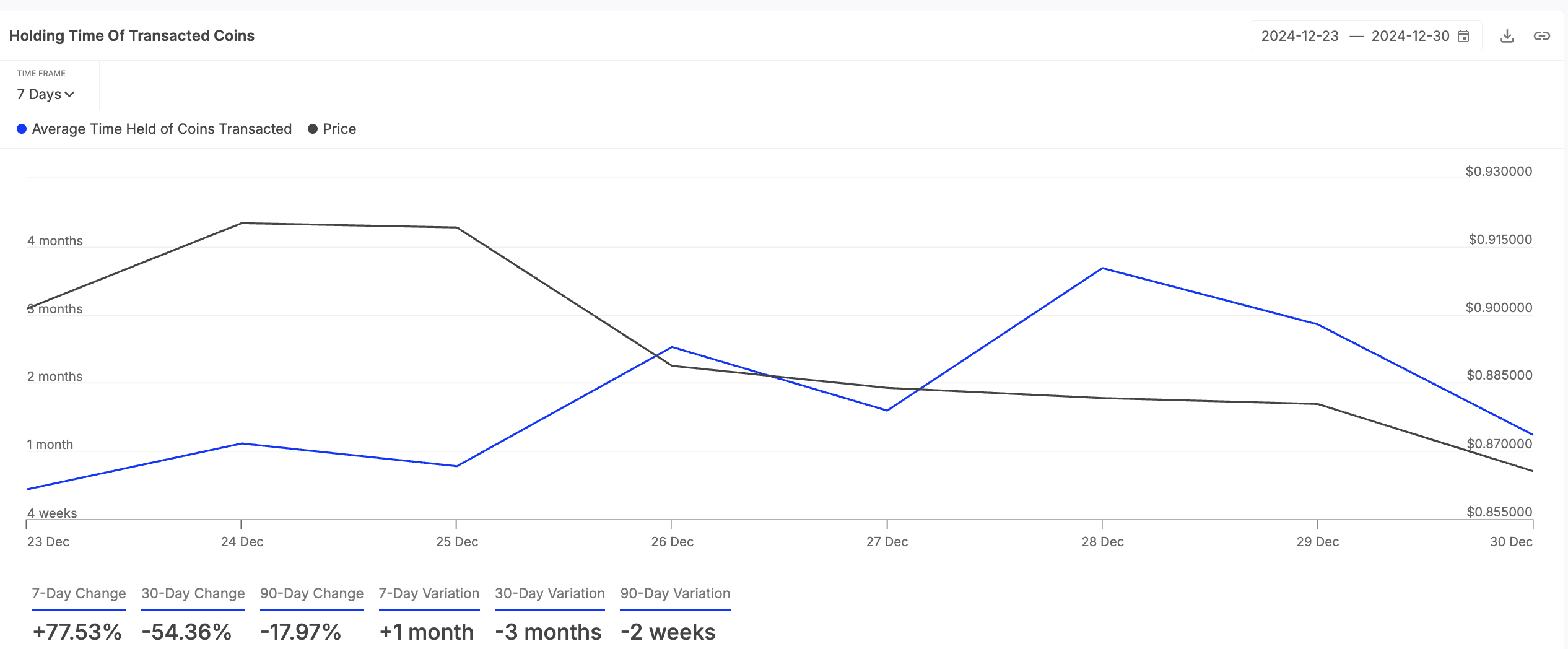SponsoredЧас утримання активу вимірює середню тривалість, протягом якої його токени утримуються перед продажем або передачею. Ця бичача тенденція позначає фазу накопичення ADA, коли трейдери менш схильні до продажу.