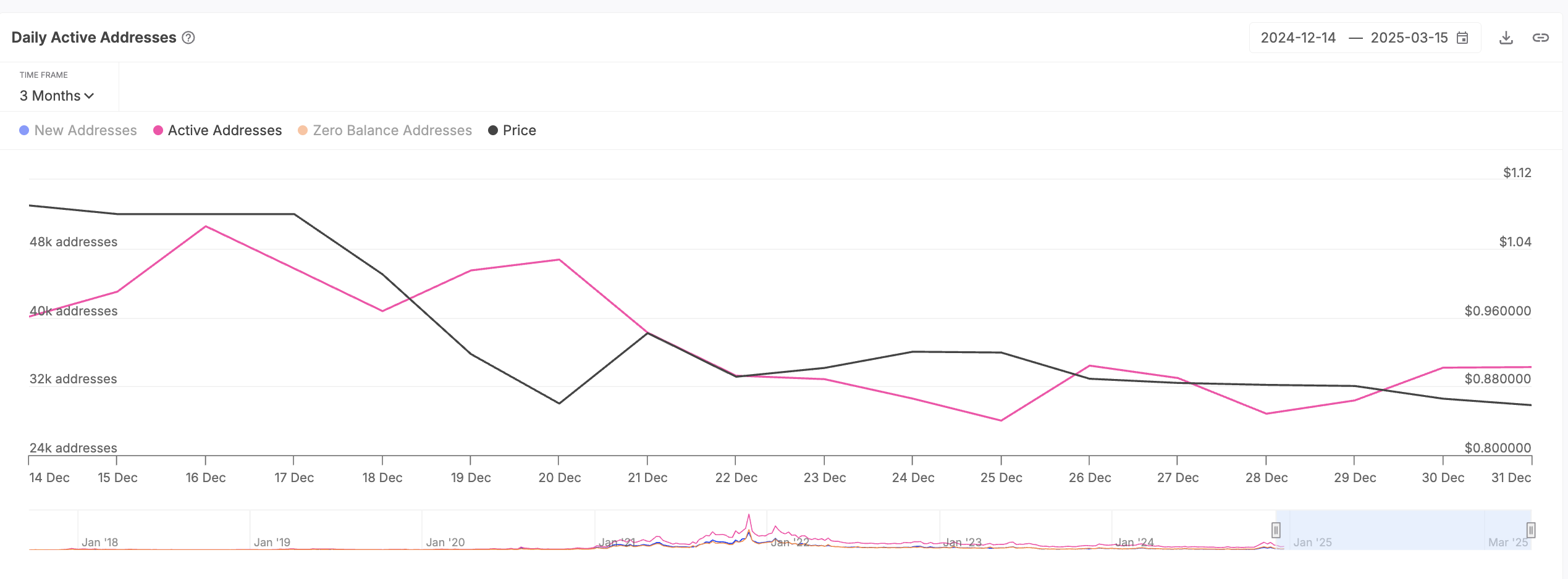 Це відновлення відбувається на тлі зростаючої активності мережі, оскільки кількість нових і щоденних активних адрес зростає протягом періоду огляду.