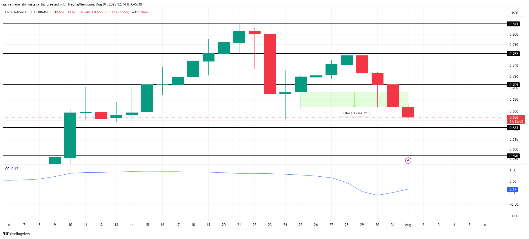 Однак, якщо ринок не зможе підтримати бичачий імпульс, OP може продовжити свій спадний тренд. Прорив нижче рівня підтримки $0,63 може призвести до подальших втрат, з потенційним падінням ціни до $0,59, що анулює будь-які бичачі прогнози на короткострокову перспективу.