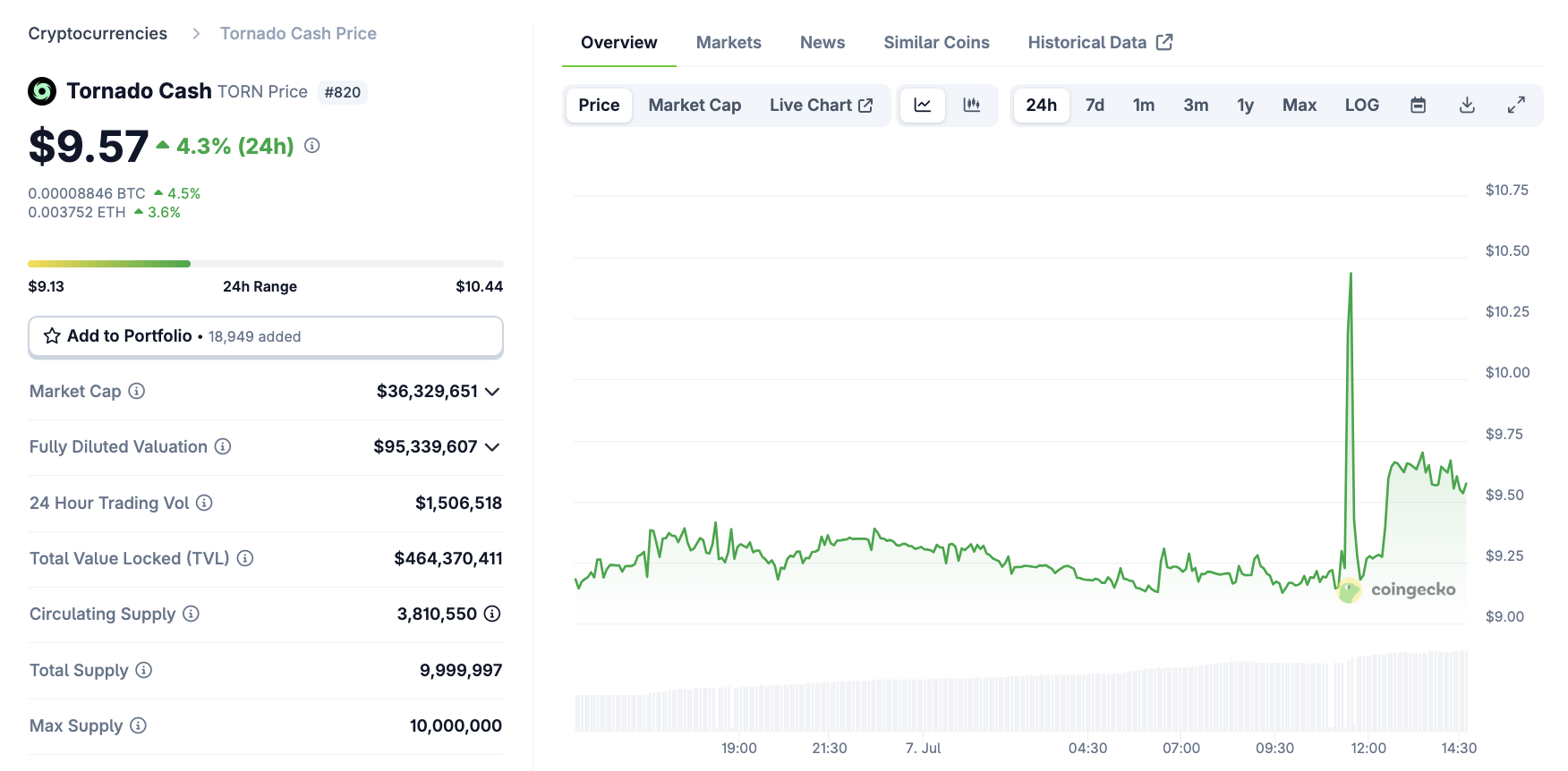 Зрештою, криптоіндустрія переживає гарний момент, але удача може бути мінливою. Наглядові органи вже підняли тривогу, що США можуть знову накласти санкції на Tornado Cash, що спонукало позов Coin Center. Його мета була успішною, що спричинило зростання активу TORN на понад 4 % сьогодні на додаток до короткочасного стрибка: