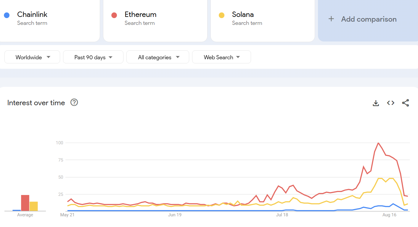 У серпні сталося щось незвичайне. Дані Google Trends у США показали, що пошуки за запитом «альткоїн» досягли нового максимуму, але за тиждень знову впали до мінімуму.