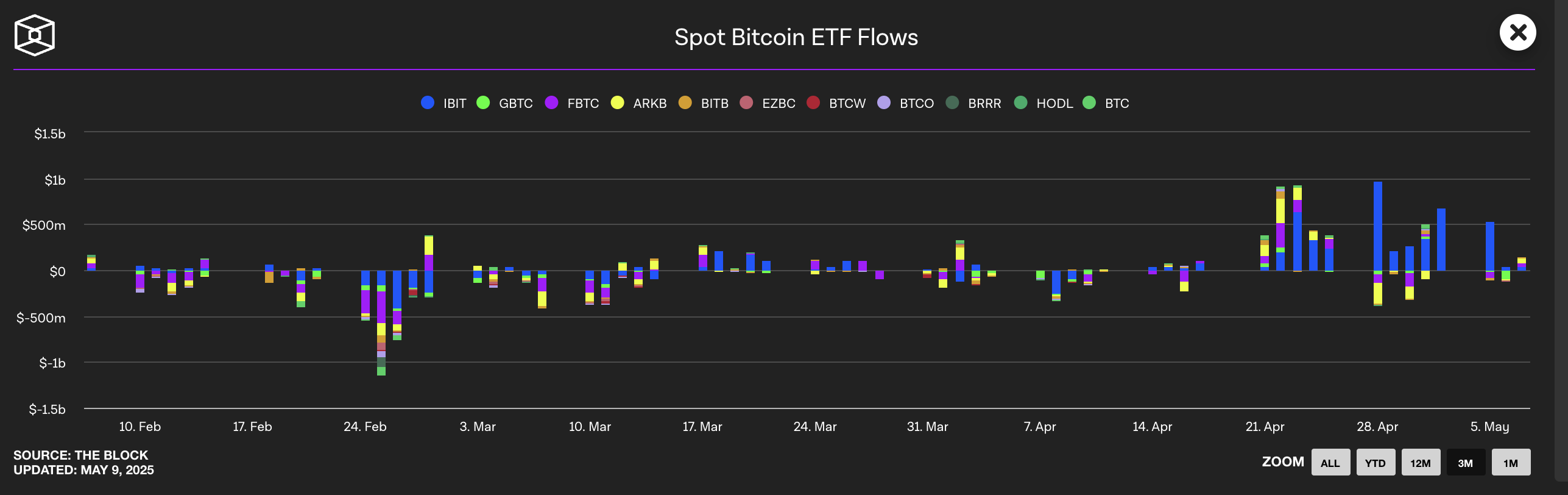 Інституційна участь залишається сильною, з ETF-ами BlackRock та Fidelity, які продовжують поглинати капітал.