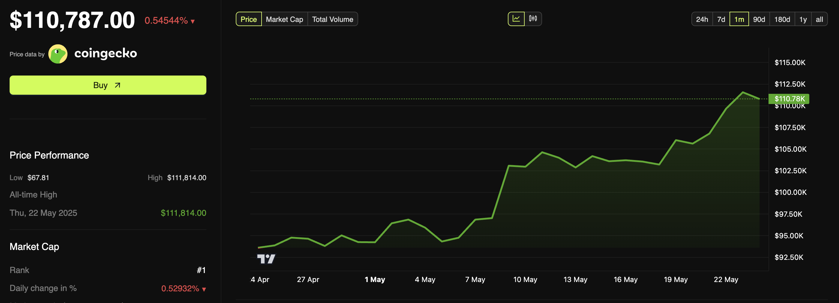 SponsoredДля біткоїна максимальна ціна болю становить 104 000 доларів. На момент написання, BTC торгувався за 110 787 доларів. Він досяг історичного максимуму в 111 917 доларів вчора, але з того часу знизився приблизно на 1,0 % від свого піку.