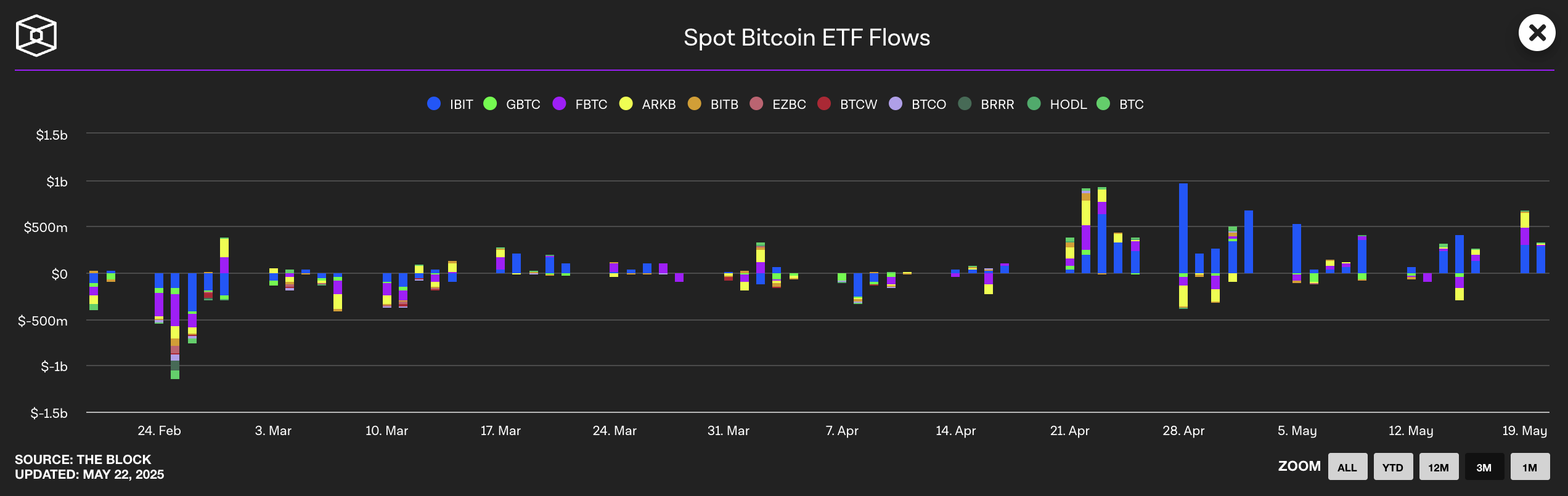 «Ротація безпечних активів у ETF-ах триває, і з 22 квітня, коли ціна на золото була високою, золоті ETP-и втратили 3,6 млрд доларів, а біткоїн-ETF-и додали 7,5 млрд доларів», — сказав Кендрік. «Нещодавно опубліковані 13F показали розширене урядове придбання біткоїн-проксі, і це, ймовірно, продовжилося у другому кварталі».