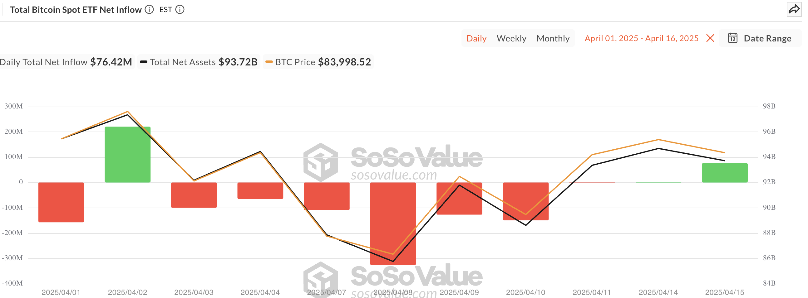 «Водночас, біткоїн-ETF-и зазнали стабільних відтоків протягом квітня, незважаючи на зростання ціни активу. На сьогодні відтоки склали 812,3 млн доларів цього місяця, причому найбільшу частку припадає на IBIT від BlackRock», — сказав Ісерс.