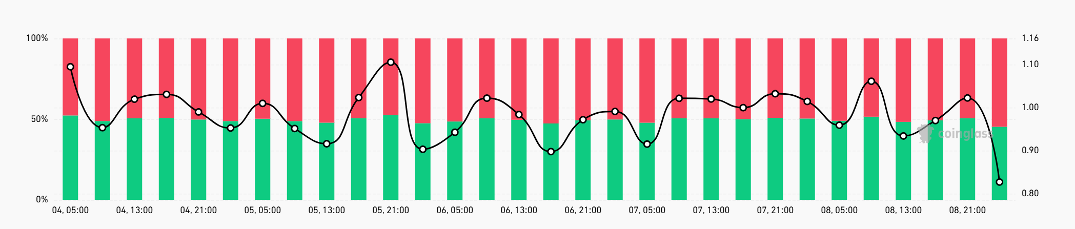 Важливо зазначити, що співвідношення довгих і коротких позицій біткоїна вперше за кілька тижнів змінилося, і тепер короткі позиції становлять 55% відкритого інтересу — це явний знак ведмежого настрою, що охоплює ринок.