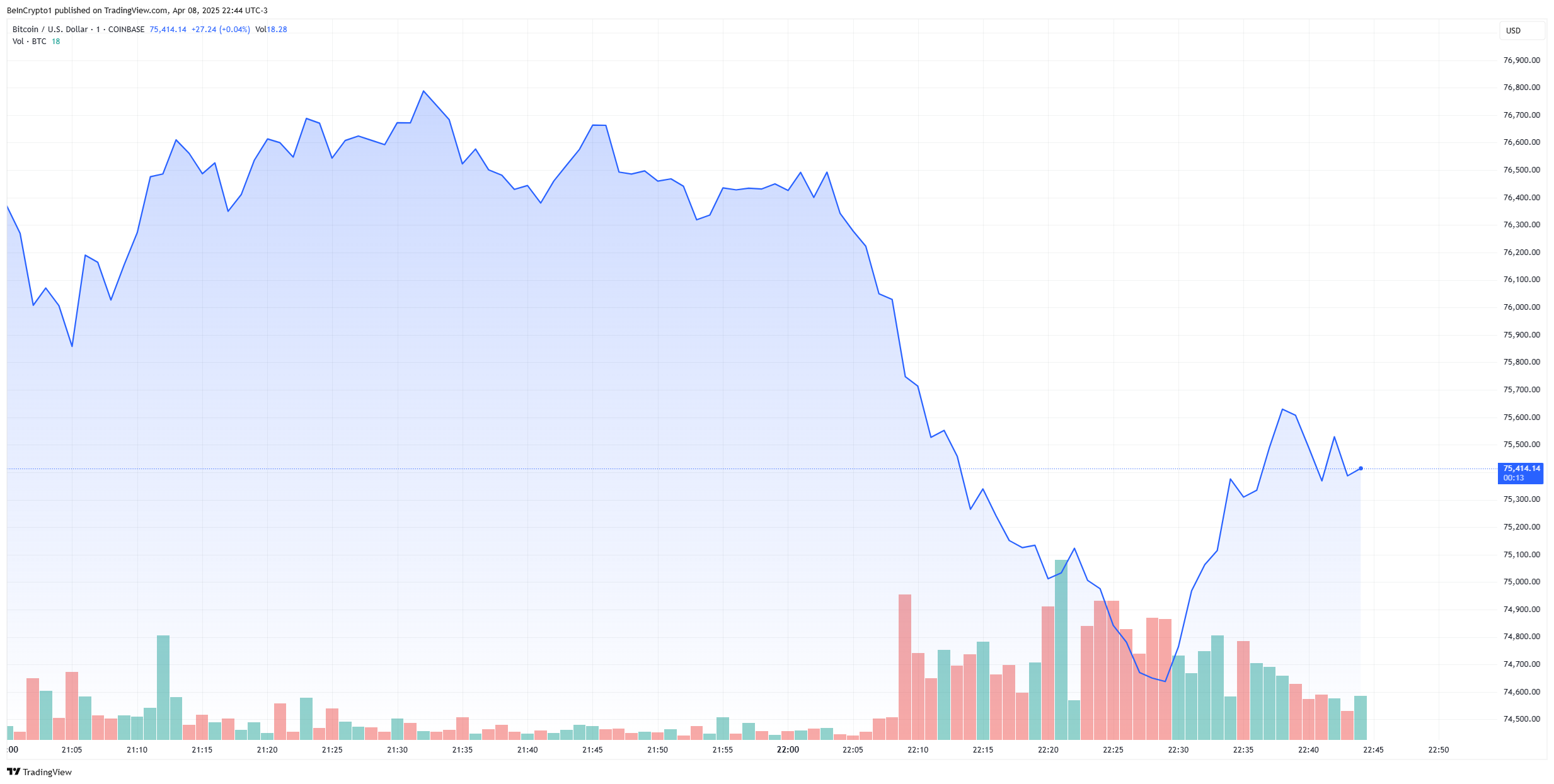 Біткоїн різко впав нижче 75 000 доларів, коли азійські та тихоокеанські фондові ринки відкрилися у середу вранці, втративши 6% за один день. Глобальні фінансові ринки занурюються під тиском через запровадження США 104% тарифу на китайський імпорт.