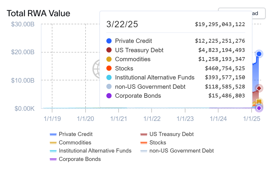 Одночасно казначейські облігації США складають 4,76 мільярда доларів США від загального обсягу, тоді як приватний кредит домінує з 12,2 мільярда доларів США.