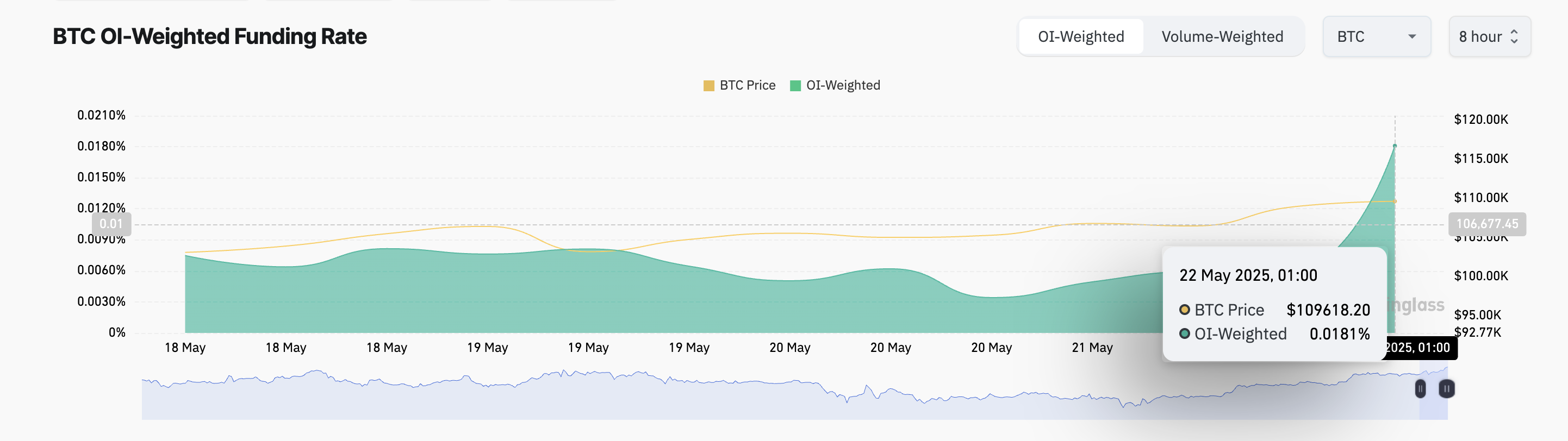Ставка фінансування є періодичною платою, що сплачується між трейдерами на ринках безстрокових ф’ючерсів, щоб утримувати ціни контрактів у відповідності з спотовою ціною активу. Коли ставка фінансування зростає, це вказує на те, що більше трейдерів роблять ставки на зростання, сигналізуючи про підвищений бичачий настрій.