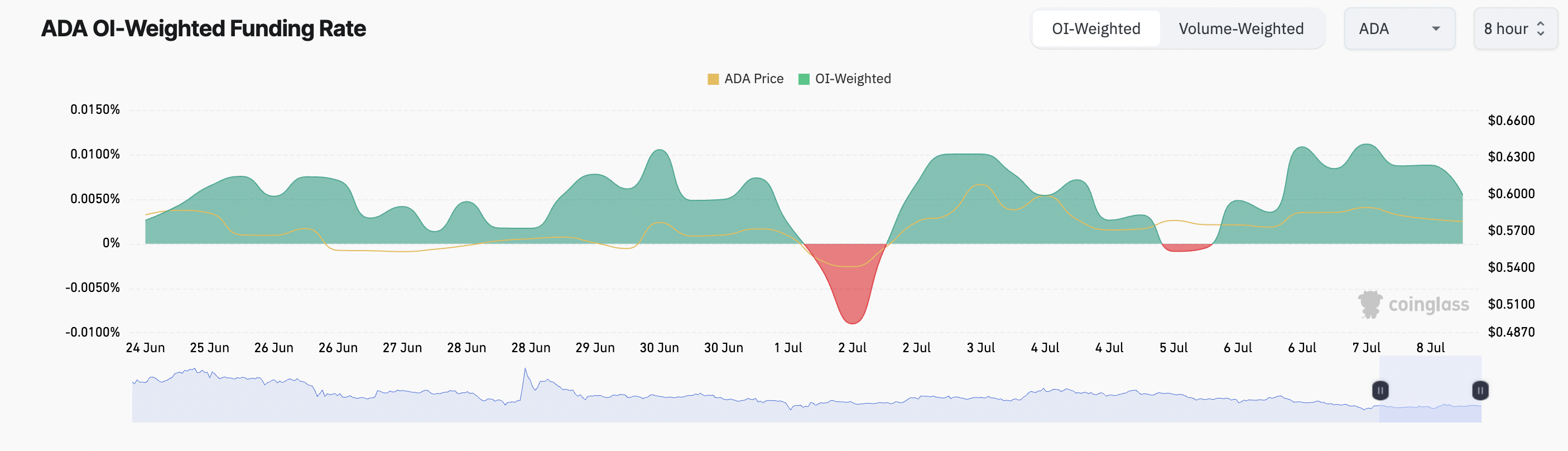 Ця тенденція свідчить про те, що більше трейдерів роблять ставки на те, що ціна ADA прорветься вище свого вузького діапазону і зафіксує нові прибутки в найближчій перспективі.