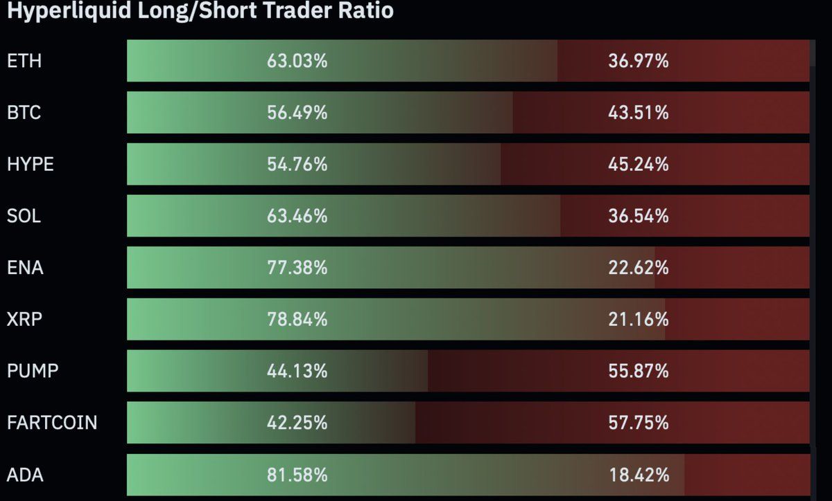 Дані від TapTools також показують, що трейдери ф’ючерсами на Hyperliquid наразі більш оптимістичні щодо ADA, ніж щодо XRP, Solana, ETH та BTC. Крім того, мережа Cardano перевищила 3,1 мільйона гаманців, що містять ADA, що свідчить про привабливість проєкту для глобальної інвесторської спільноти.