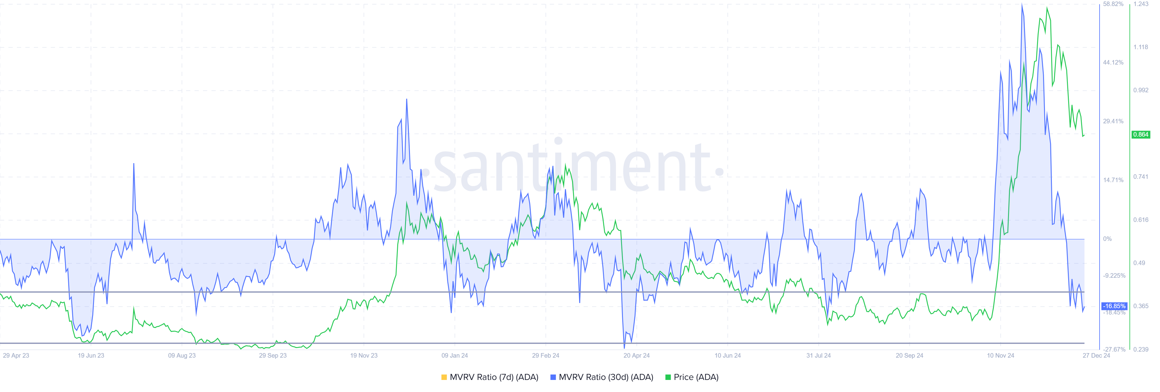 Cardano (ADA) зазнав стабільного зниження ціни з початку грудня, досягнувши місячного мінімуму в 0,86 USD. Це падіння залишило інвесторів ADA в очікуванні похмурого початку нового року.