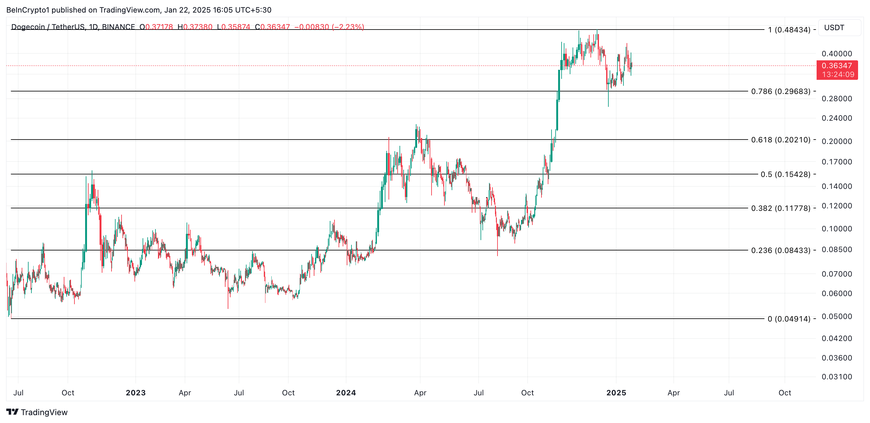 Однак цей бичачий прогноз буде скасовано, якщо акумуляція зупиниться і активність продажу відновиться. У такому випадку ціна DOGE може знизитися до $0,29.