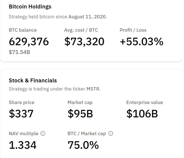 Дані про біткоїн-скарбниці показують, що MicroStrategy володіє майже 630 000 BTC з керованими рівнями боргу.
