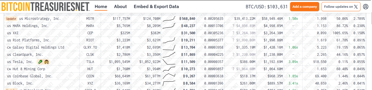 Twenty One Capital є третім за величиною корпоративним утримувачем біткоїнів після Strategy та компанії з майнінгу біткоїнів MARA Holdings. Дані Bitcoin Treasuries показують, що Strategy володіє 568 840 біткоїнами, тоді як MARA має 48 237 біткоїнів.