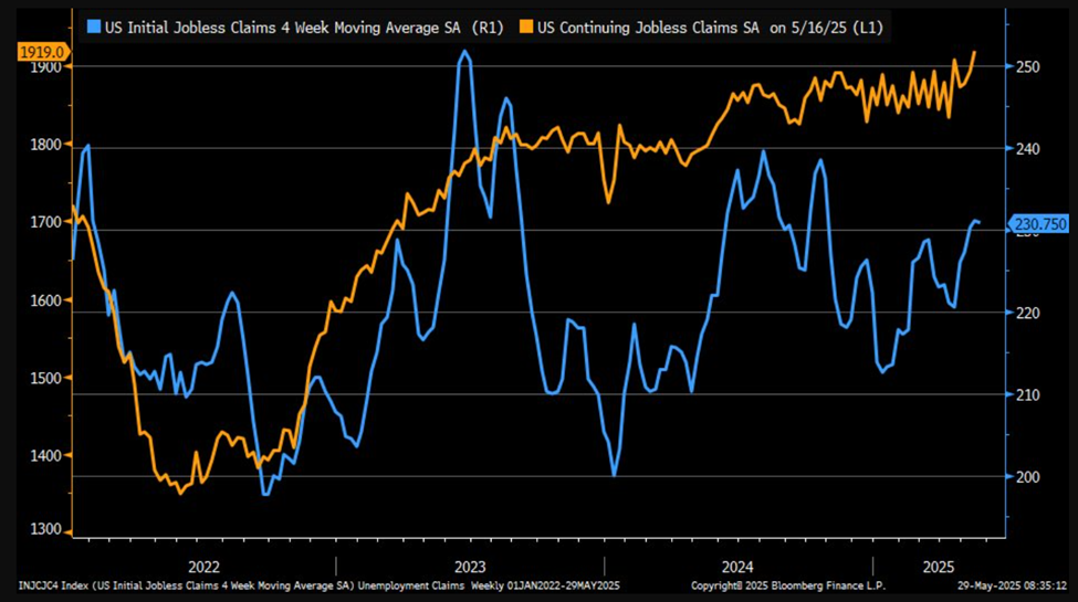 Початкові заявки на допомогу з безробіття за тиждень, що закінчився 24 травня, зросли до 240 000, порівняно з 226 000 попереднього тижня, перевищивши прогноз у 229 000. Це найвищий рівень з листопада 2021 року, що вказує на можливе пом’якшення ринку праці.