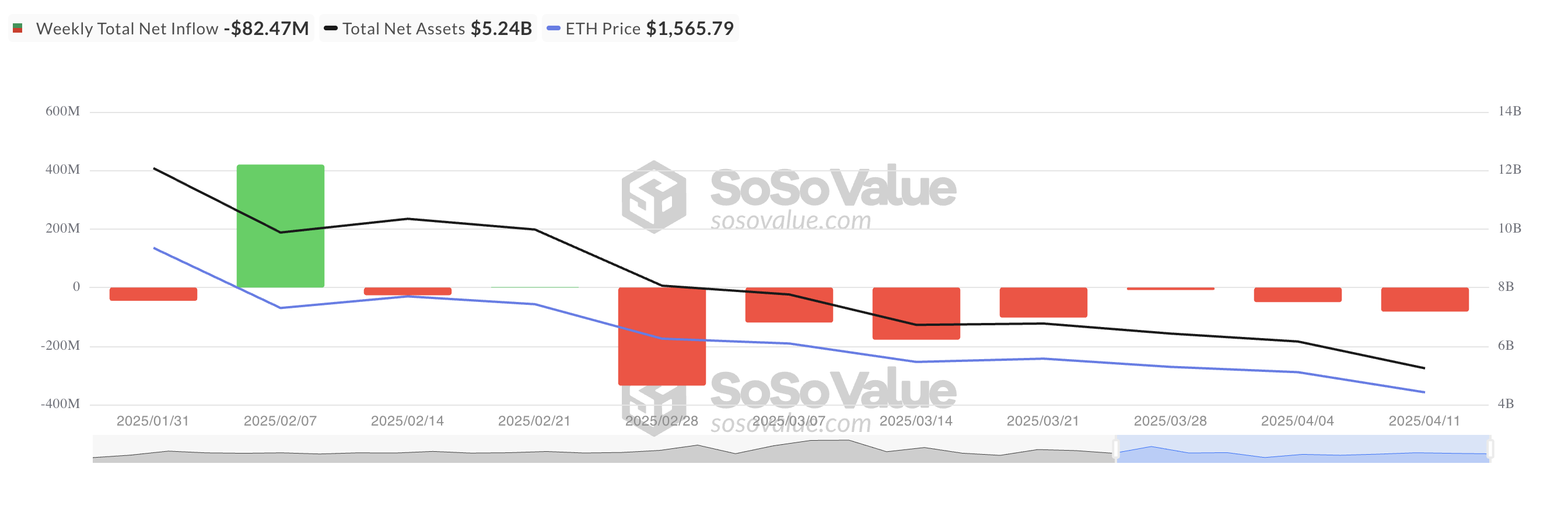 Важливо зазначити, що з кінця лютого не було жодного тижня з чистими притоками, що підкреслює зменшення інституційного інтересу до продуктів, пов’язаних з ефіріумом (ETH).