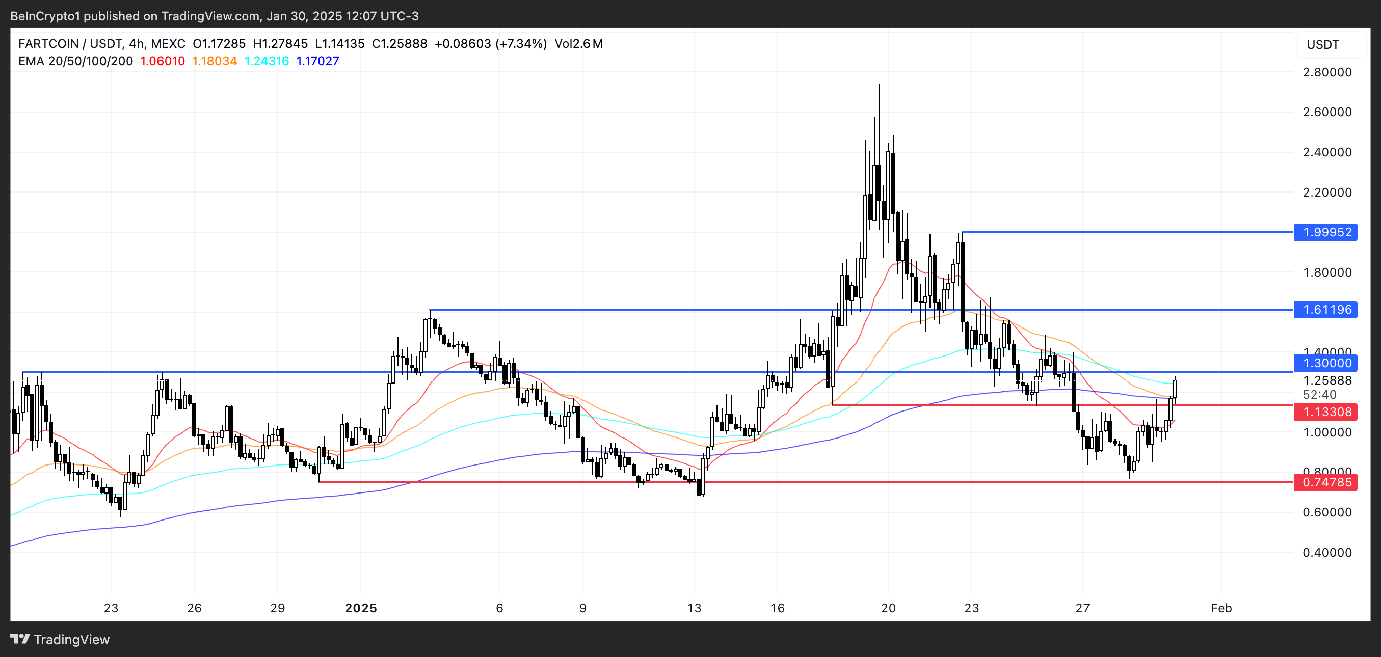 Прорив вище цього рівня може підштовхнути FARTCOIN до 1,99 доларів, що означатиме потенційне зростання на 60% від поточних рівнів. З огляду на недавній моментум, цінова дія в найближчих сесіях буде вирішальною для визначення, чи зможе це ралі зберегтися.