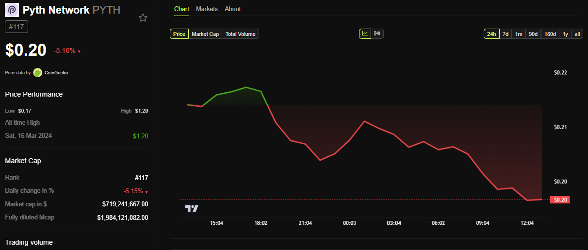 Незважаючи на цей звіт, реакція на токен PYTH була досить стриманою. На момент написання, токен знизився більш ніж на 5%, торгуючись за 0,20 доларів.