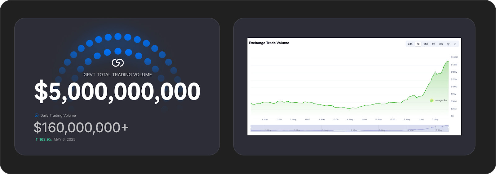 Сьогодні, лише через чотири місяці після публічного запуску основної мережі, GRVT обробила понад 5 млрд доларів у торговому обсязі.