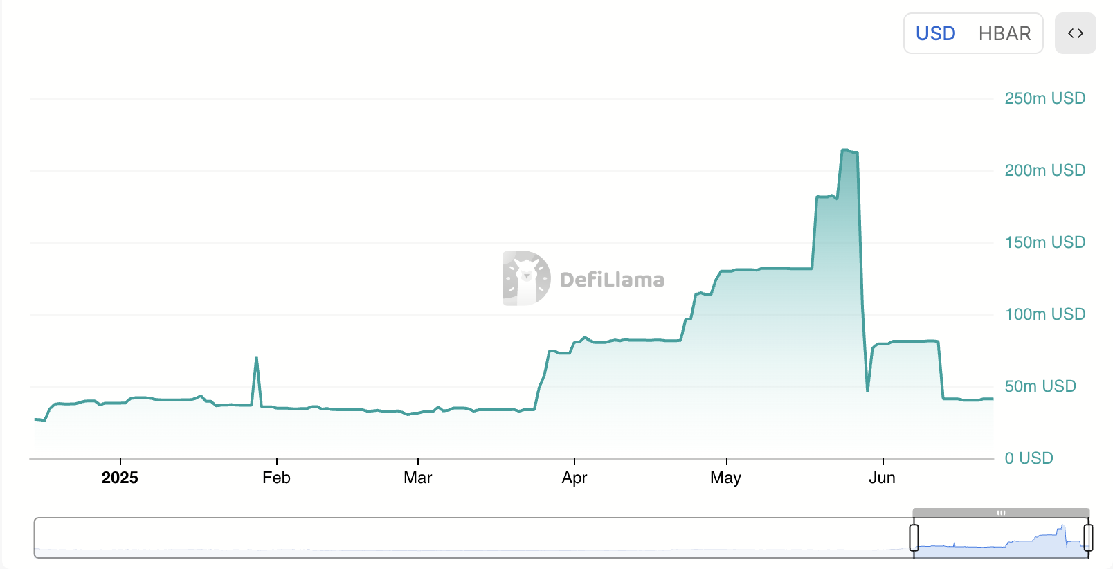 За даними DefiLlama, пропозиція стабільних токенів на Hedera знизилася до найнижчого рівня за 90 днів. На момент публікації вона становить 41 млн доларів, що на понад 80 % менше від піку минулого місяця у 216 млн доларів.