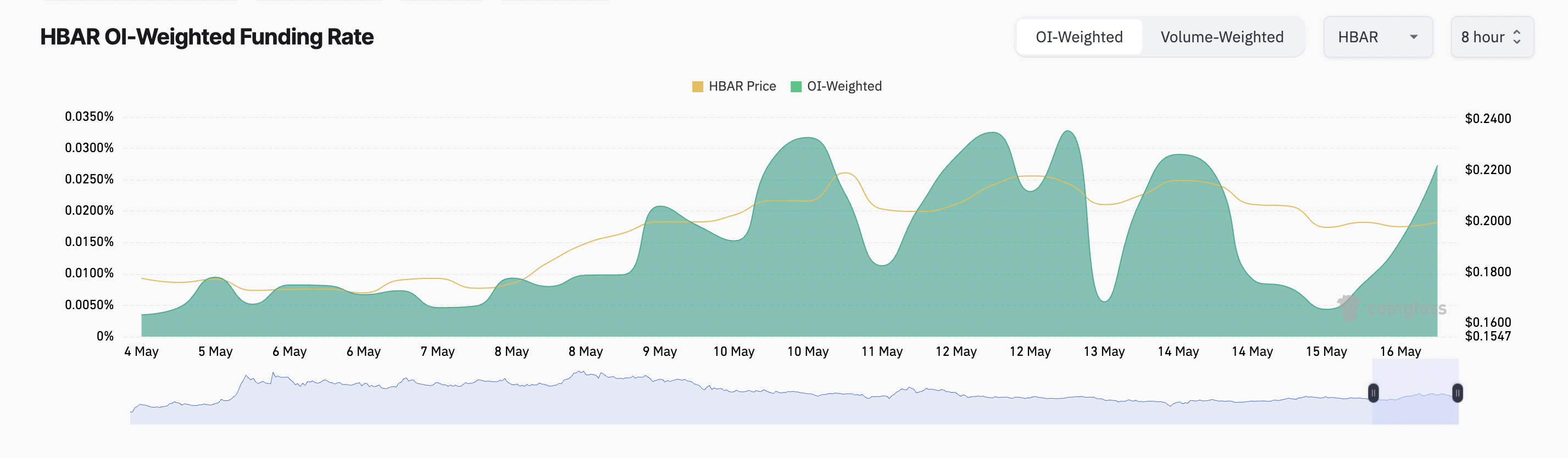 Крім того, ставка фінансування HBAR залишається позитивною на тлі його слабкої цінової динаміки. На момент публікації вона становила 0,027 %, що відображає постійний попит на довгі позиції.