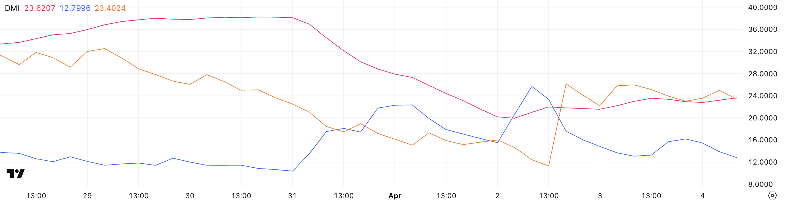 Тим часом, лінії +DI та -DI, які представляють бичачий та ведмежий спрямований рух відповідно, значно змінилися.