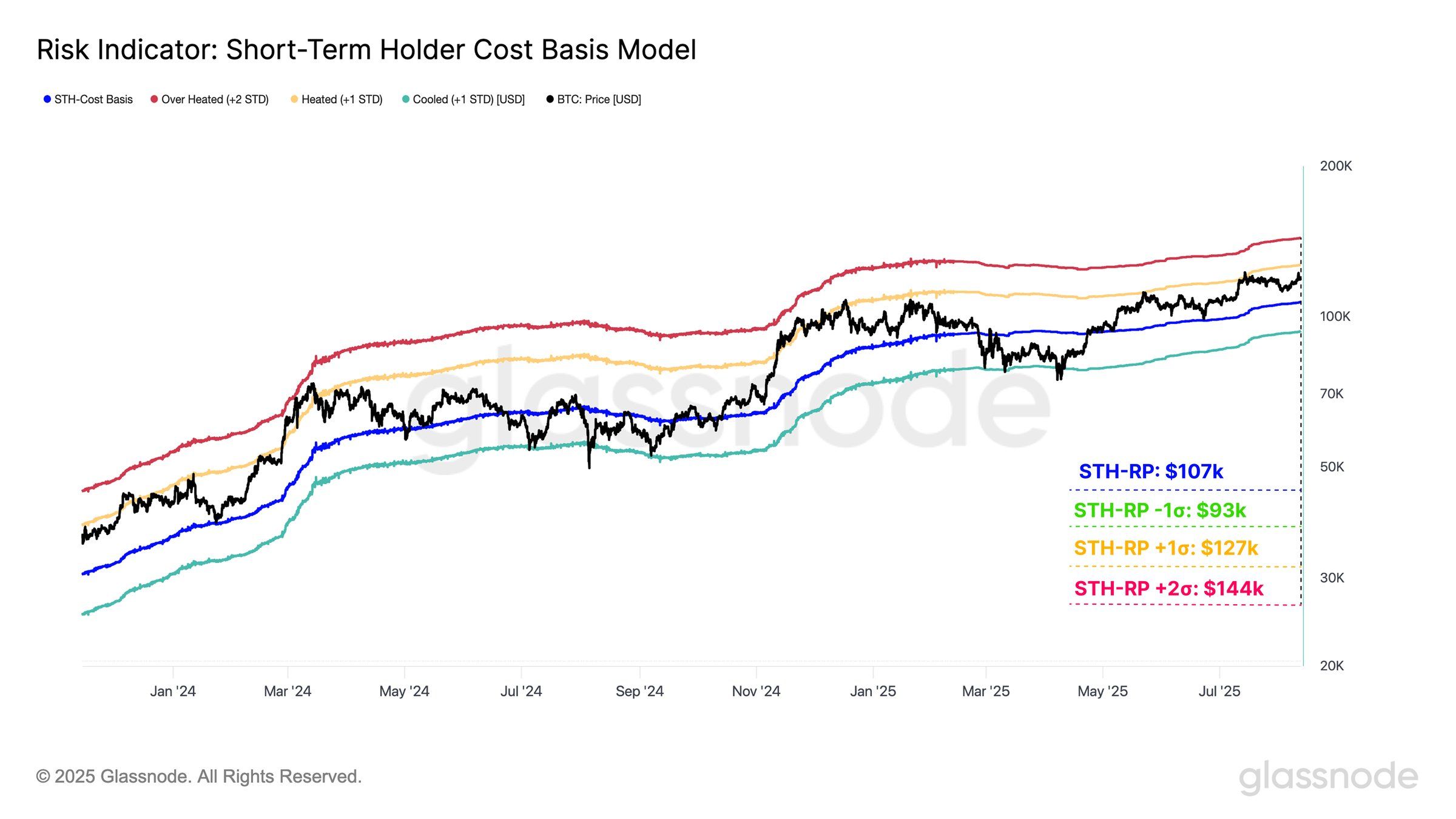 Модель STH Cost Basis слугує корисною основою для розуміння поведінки інвесторів. Вона встановлює середню ціну входу для нових гаманців біткоїна, застосовуючи смуги стандартного відхилення для виділення перегрітих зон. Ці зони часто збігаються з точками фіксації прибутку, де трейдери починають виходити, коли ціни зростають.