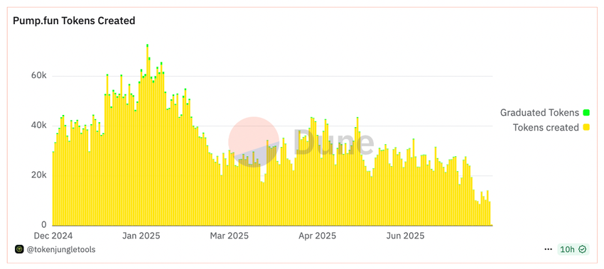 Кількість токенів, створених щодня на Pump.fun з моменту запуску. Джерело: Dune Analytics