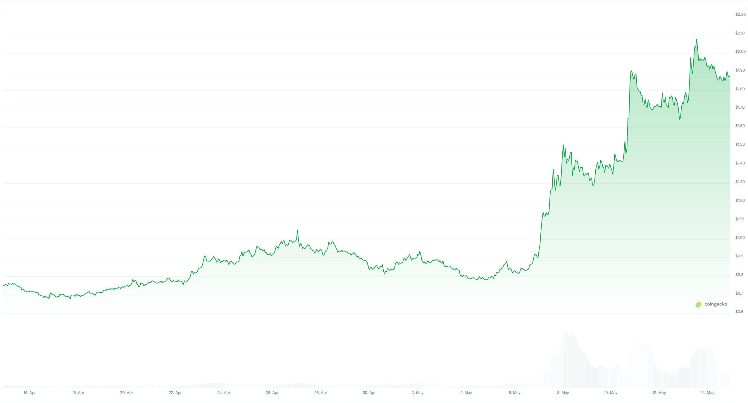 Низка запланованих оновлень 6 травня, імовірно, також сприяла успіху, адже ціна токена й обсяги торгів різко зросли наступного дня.