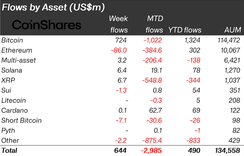 SponsoredНадходження в криптовалютні активи сягнули 644 мільйонів доларів, а ринкові настрої відновилися