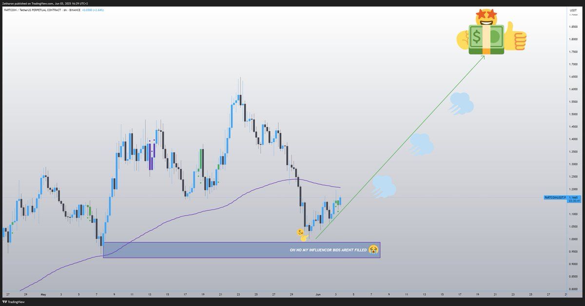 На момент написання, FARTCOIN торгується за 1,08 доларів, що на 4,7 % менше за останні 24 години. Проте деякі трейдери залишаються досить оптимістичними щодо довгострокової ціни цього мемкоїна.