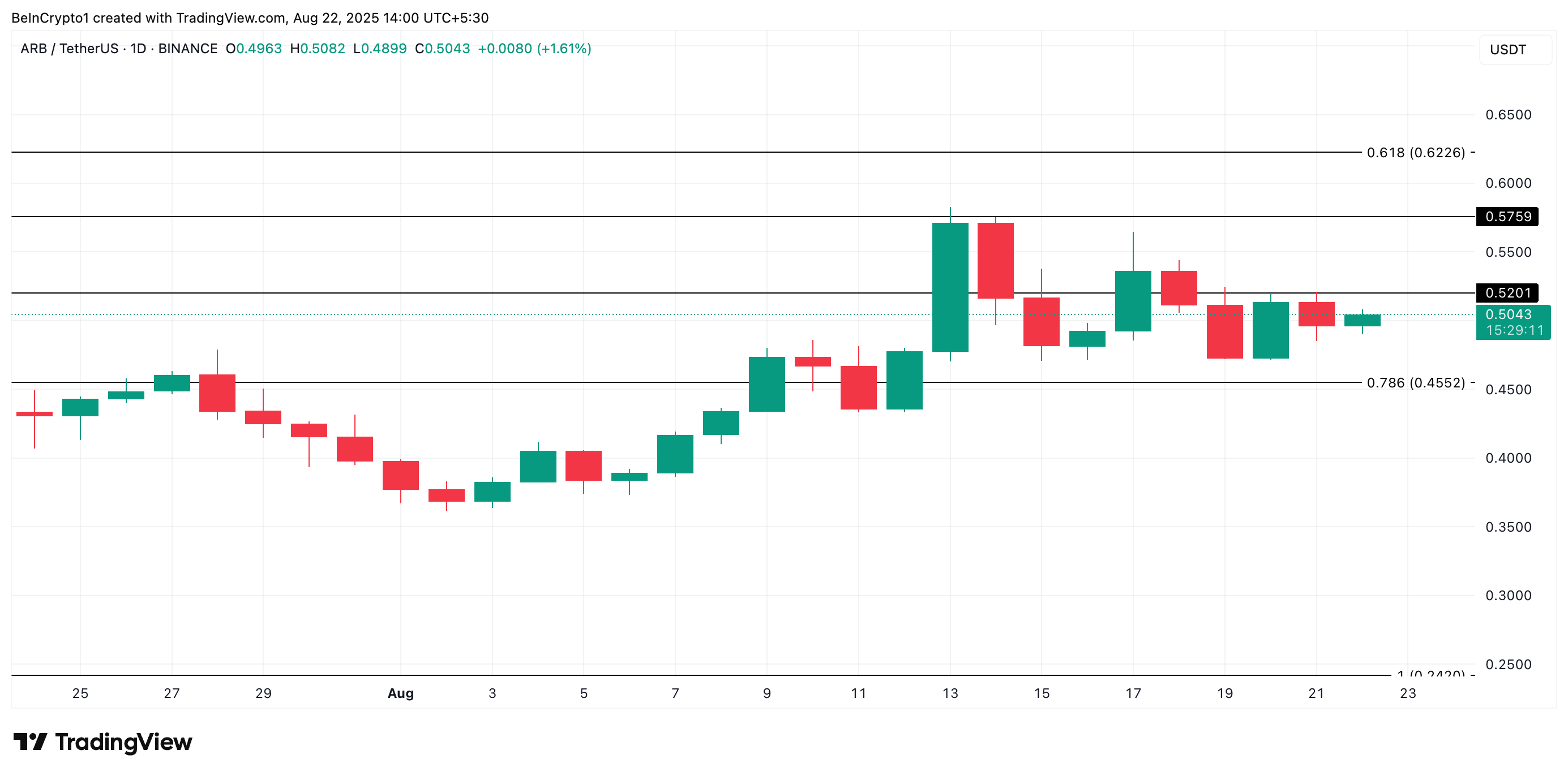 Якщо попит зросте, ARB може подолати опір, сформований на рівні 0,52 долара, і просунутися до 0,57 долара.