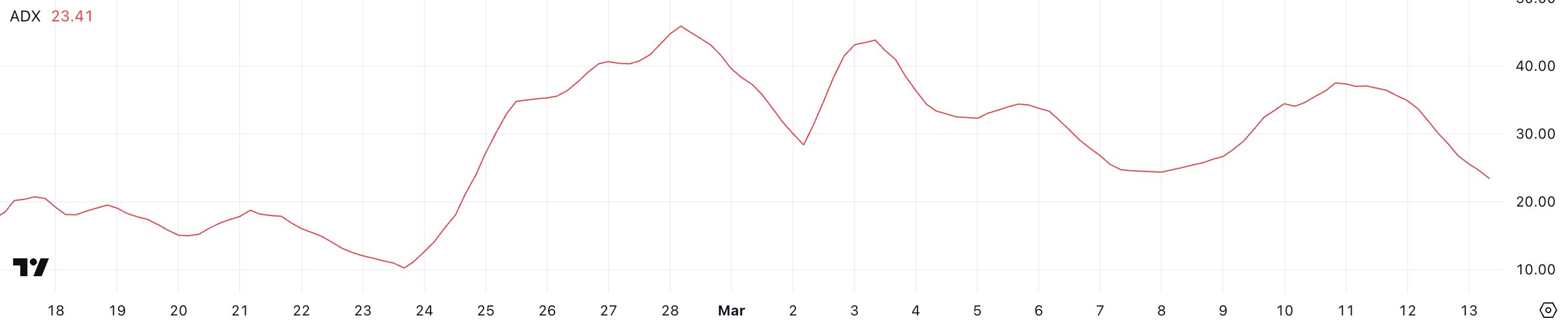 Оскільки Cardano залишається у спаді, падіння ADX до 23,4 вказує на те, що ведмежий імпульс сповільнюється, хоча він ще не зник повністю.