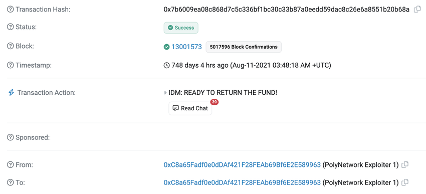 Прикладом цього є спілкування з хакером, який здійснив найбільшу атаку в історії смартконтрактів – атаку на Poly Network, про яку ми згадували раніше. Після атаки не було жодних ознак хакера. Але після того, як хакер вивів частину грошей на свій відстежуваний гаманець, який використовувався на одній з бірж, у нього не залишалося іншого вибору, окрім як почати повертати кошти.