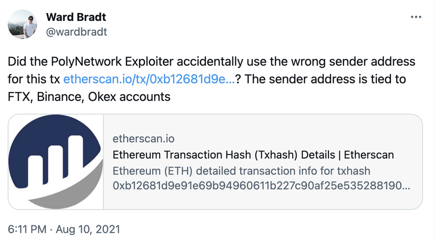 SponsoredПісля успішної атаки хакер не реагував на жодні пропозиції, які мотивували його повернути гроші. Однак, твіт від облікового запису @wardbradt припустив, що хакер використав адресу для виведення, яка могла розкрити його особу.