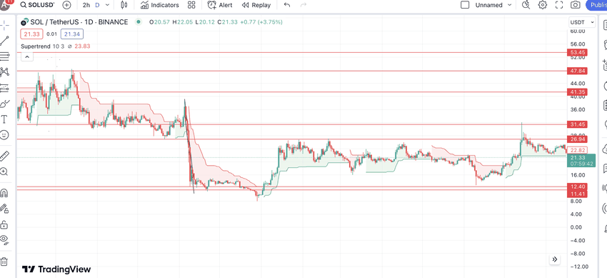 Інша криптовалюта, інше представлення індикатора Supertrend: