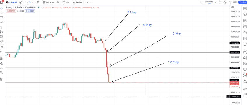 Графік цін показує, як сценарій «Падіння ножа» розгорнувся для LUNA.