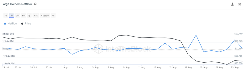 Графік нижче показує індикатор чистого потоку великих власників. Якщо цей індикатор різко зростає, це означає, що великі власники купують. Такі сплески зазвичай є позитивним сигналом, особливо якщо вони повторюються кілька разів поспіль.