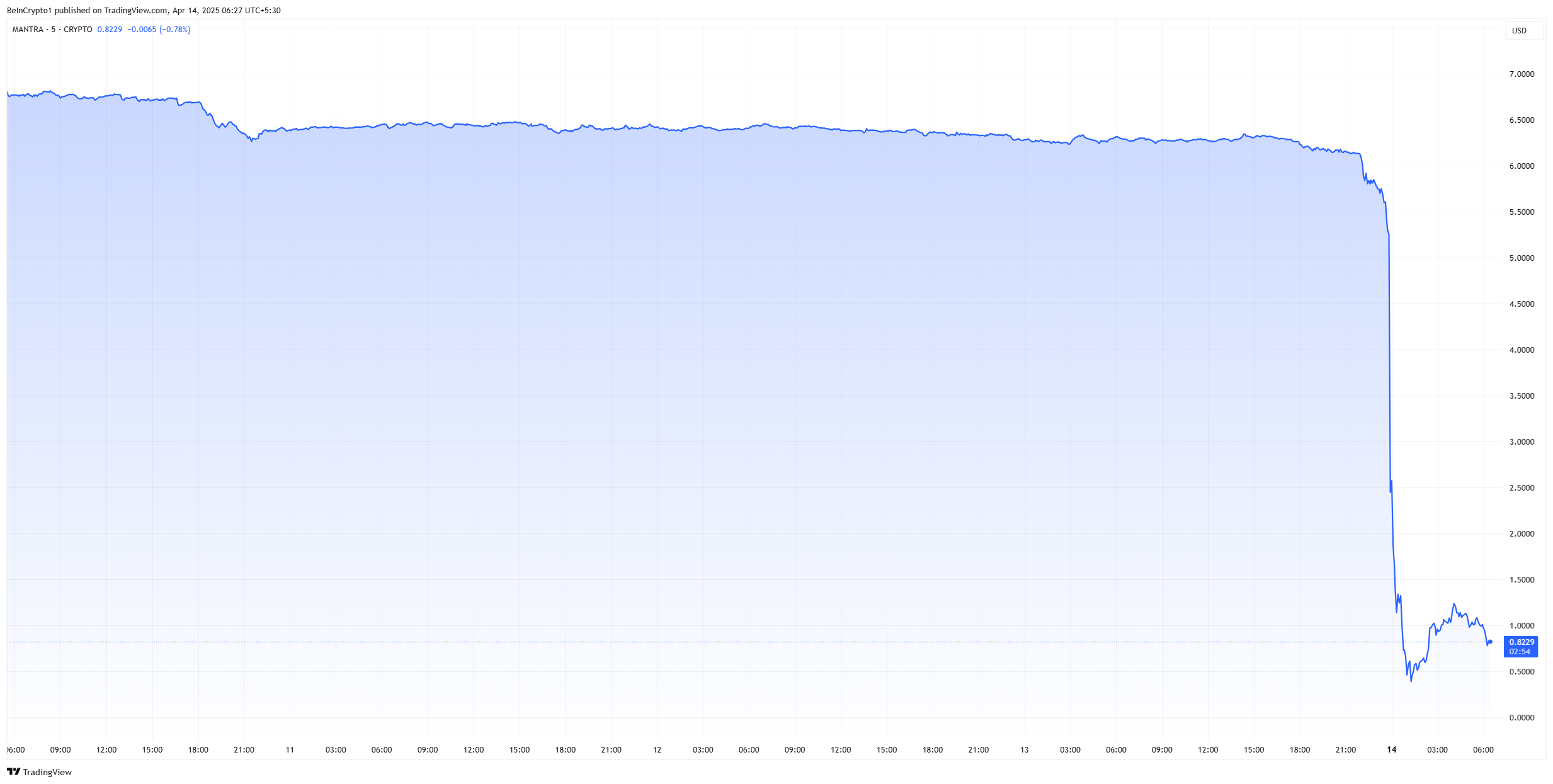 Токен MANTRA (OM) зазнав катастрофічного падіння ціни 13.04.2025, знизившись більш ніж на 90% менш ніж за годину та втративши понад 5,5 мільярда доларів у ринковій капіталізації.