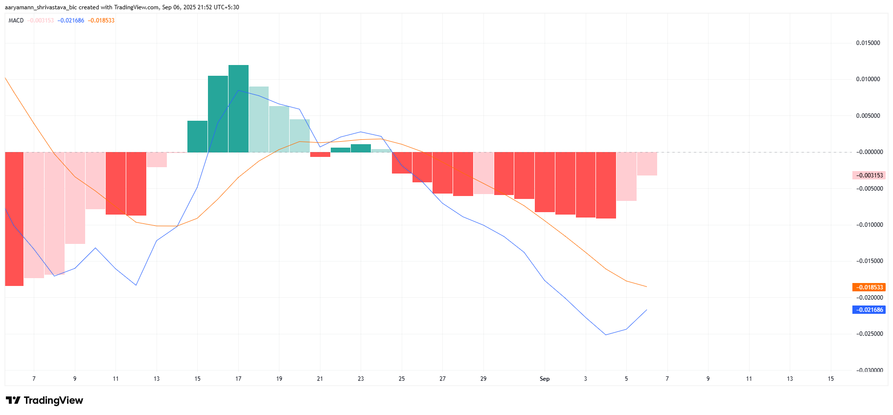 Незважаючи на недавній стрибок, індикатор Chaikin Money Flow (CMF) сигналізує про приховану слабкість. Наразі він знаходиться нижче нульової лінії в негативній зоні, що вказує на обмежену участь інвесторів та слабкий приплив інвестицій.