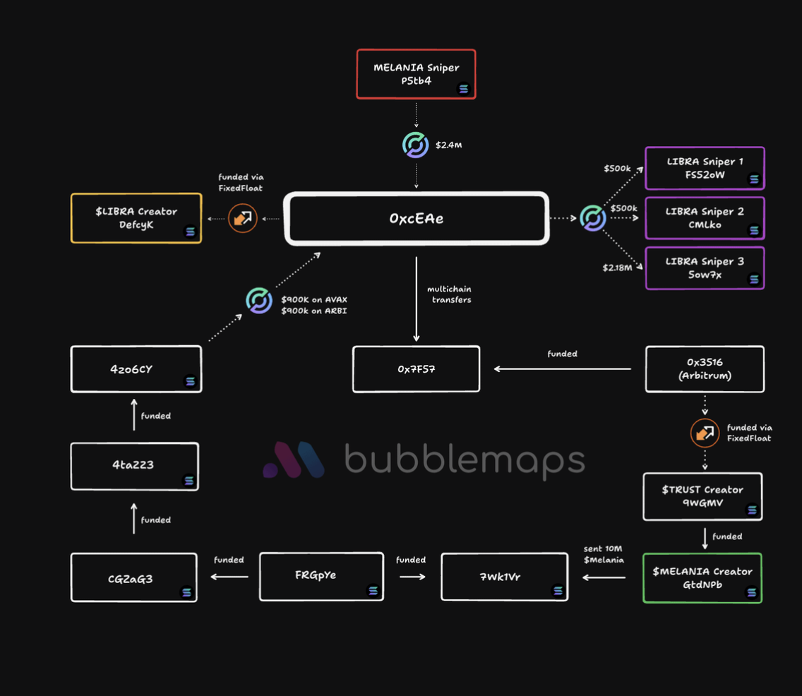 Розслідування виявило докази, що свідчать про зв’язки між командами, що стояли за запуском токена LIBRA та монети MELANIA, запущеної першою леді Меланією Трамп за день до того, як Дональд Трамп став президентом США.