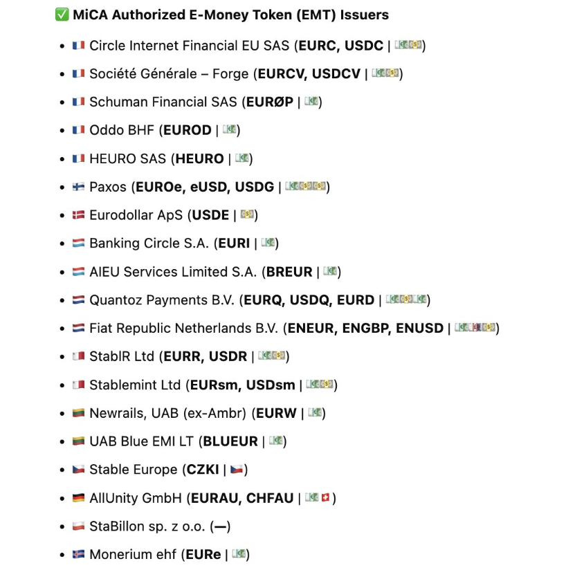В оновленні реєстру ESMA за березень 2026 року присутні 19 схвалених емітентів EMT у 11 країнах, у порівнянні з 17 емітентами у 10 країнах на два місяці раніше.