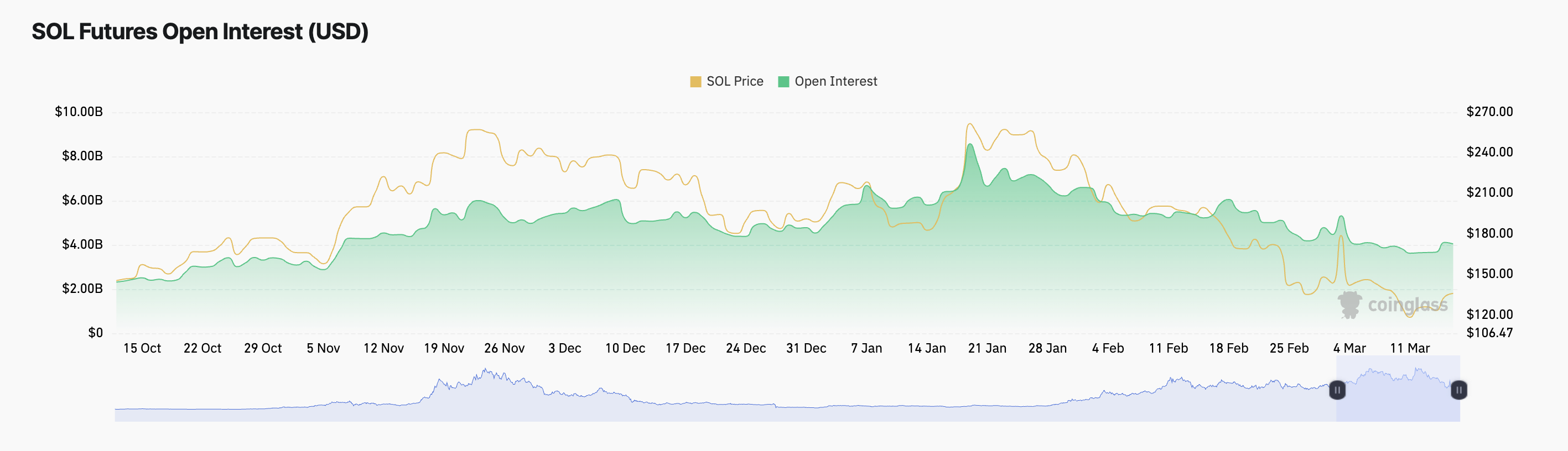 SponsoredНа момент написання, альткоїн торгується за 133,20 доларів, відзначаючи зниження на 33% за останній місяць на тлі падіння попиту. Його падаюча відкрита зацікавленість на ф’ючерсному ринку підкреслює ослаблення купівельного тиску. Наразі вона становить 4,04 мільярда доларів, знизившись на 24% за останній місяць.