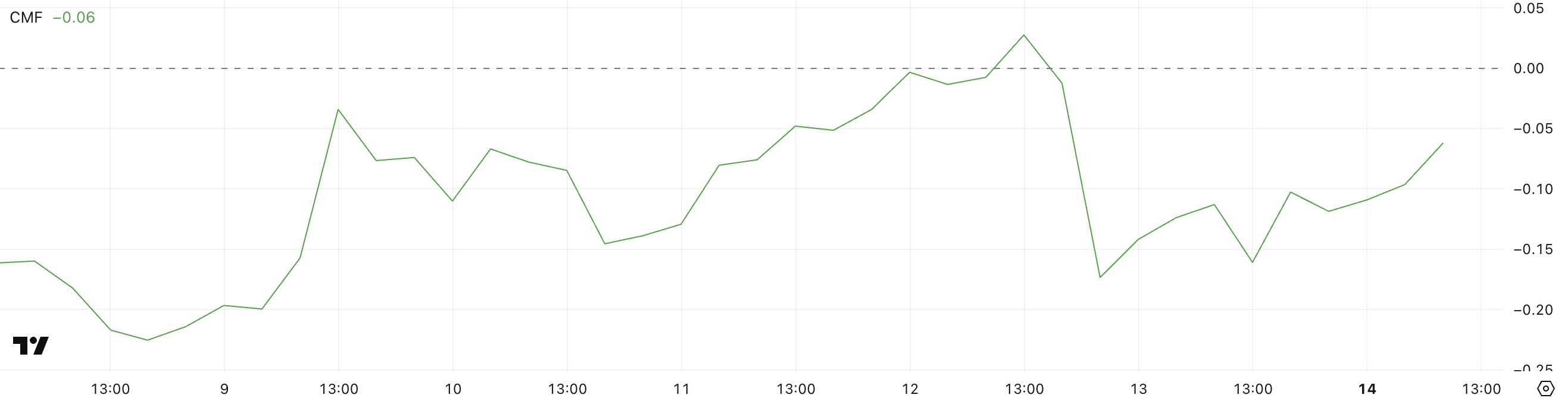 Хоча поточний CMF все ще показує обережний тон, рух вгору сигналізує про покращення впевненості на ринку, що, якщо збережеться, може підтримати подальше відновлення ціни.